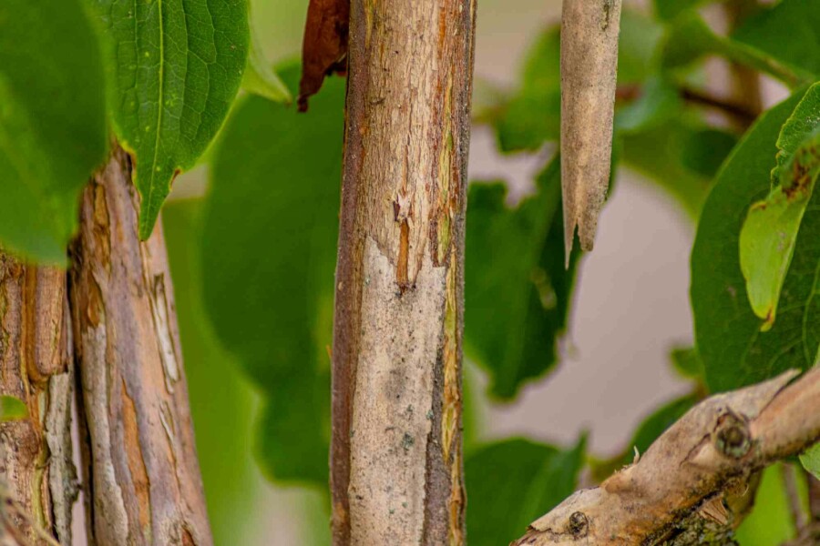• Die Rinde der Heptacodium miconioides ist besonders attraktiv und bietet im Winter visuelles Interesse.