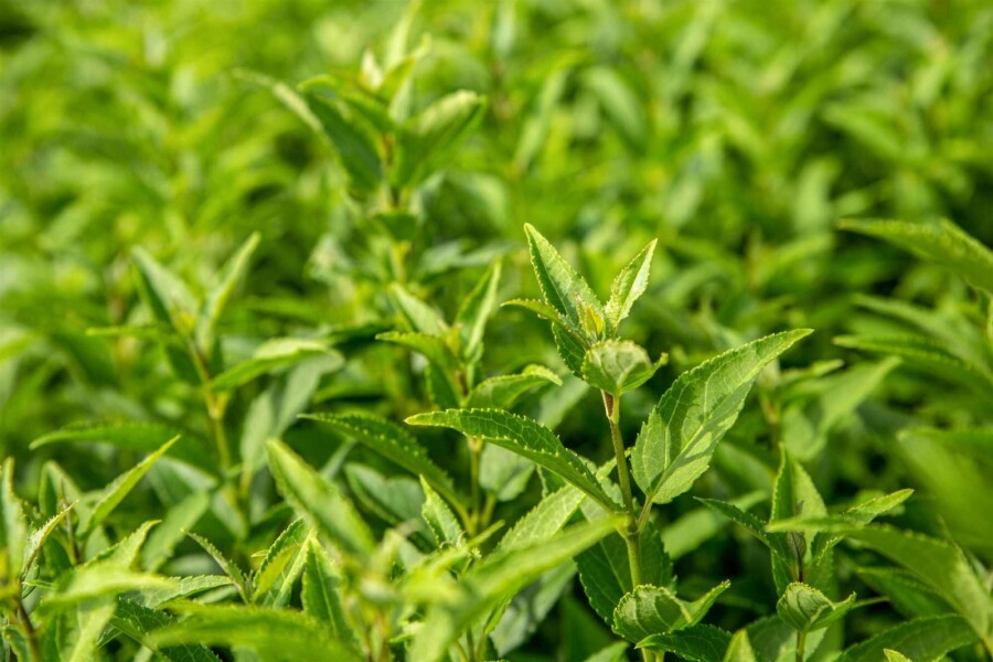 Die Deutzia gracilis, bekannt als Deutzie, ist ein kompakter Strauch mit aufrechter Wuchsform. Diese Pflanze erreicht eine Höhe von etwa 70 cm und ist ideal für kleine Gärten. Die Blätter der Deutzie sind grün, oval und fühlen sich glatt an. Obwohl die Deutzia gracilis nicht immergrün ist, bietet sie dennoch einen schönen Anblick in der Gartensaison. Die Deutzie ist pflegeleicht und benötigt wenig Wartung, was sie zu einer beliebten Wahl für Gartenliebhaber macht. Diese Pflanze bildet keine Früchte oder Beeren.