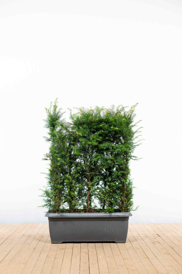 Die Taxus baccata, auch bekannt als Eibe, ist eine immergrüne Pflanze, die sich hervorragend als Hecke eignet. Diese Konifere ist besonders beliebt wegen ihrer dichten Verzweigung und der Fähigkeit, schnell sichtdicht zu werden. Die Blätter der Taxus baccata sind dunkelgrün und behalten ihre Farbe das ganze Jahr über, was sie zu einer idealen Wahl für eine immergrüne Hecke macht. Die Taxus baccata kann sowohl in der Sonne als auch im Schatten oder Halbschatten gepflanzt werden, was sie sehr vielseitig macht. Mit einer jährlichen Wachstumsrate von 20 bis 40 cm ist sie eine mäßig schnell wachsende Pflanze. Die endgültige Höhe der Hecke hängt von der regelmäßigen Pflege und dem Schnitt ab, wodurch sie sowohl als hohe Hecke als auch als niedrige Hecke im Vorgarten verwendet werden kann. Die aufrechte Wuchsform der Taxus baccata sorgt dafür, dass sie dicht verzweigt ist, besonders wenn sie regelmäßig geschnitten wird. Dies trägt zur schnellen Sichtdichte bei, die viele Gartenbesitzer schätzen. Wer eine immergrüne Hecke pflanzen möchte, findet in der Taxus baccata eine ausgezeichnete Wahl. Weitere Informationen zu immergrünen Heckenpflanzen finden Sie hier.