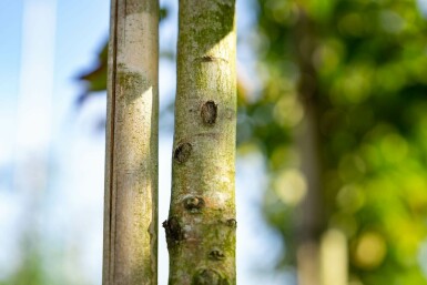 Der Amelanchier arborea 'Robin Hill' hat eine graue bis braune, glatte bis gefurchte Rinde.