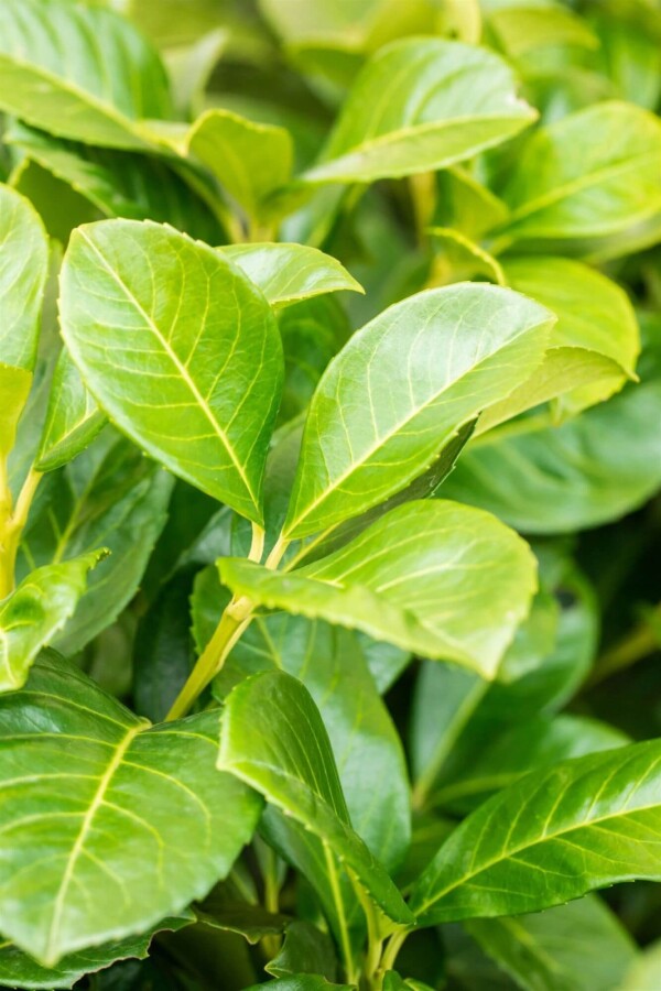 Prunus laurocerasus 'Etna' ist eine beliebte Wahl für eine hohe Hecke. Diese Heckenpflanze wächst schnell und bietet das ganze Jahr über dichten Sichtschutz. Die glänzenden, dunkelgrünen Blätter sind ein besonderer Blickfang in jedem Garten.