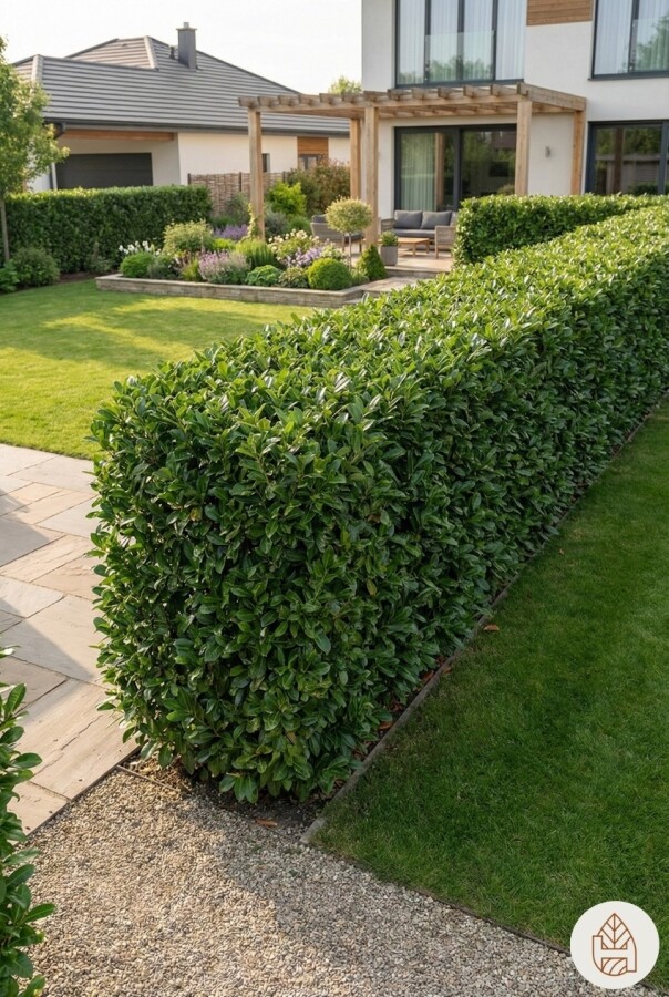 Die Prunus laurocerasus 'Etna' Hecke ist eine beliebte Wahl für Gärten. Diese Heckenpflanze bietet viele Vorteile: