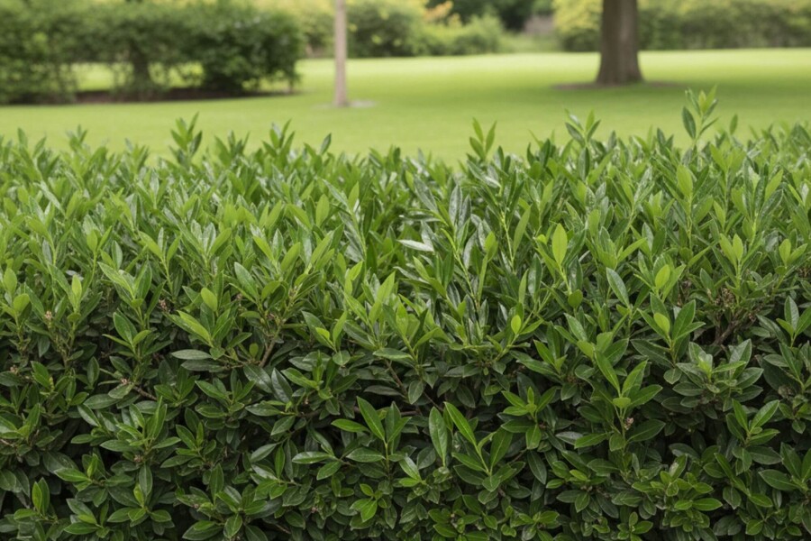 Die Prunus laurocerasus 'Otto Luyken' ist eine ausgezeichnete Wahl für eine dichte und immergrüne Hecke.