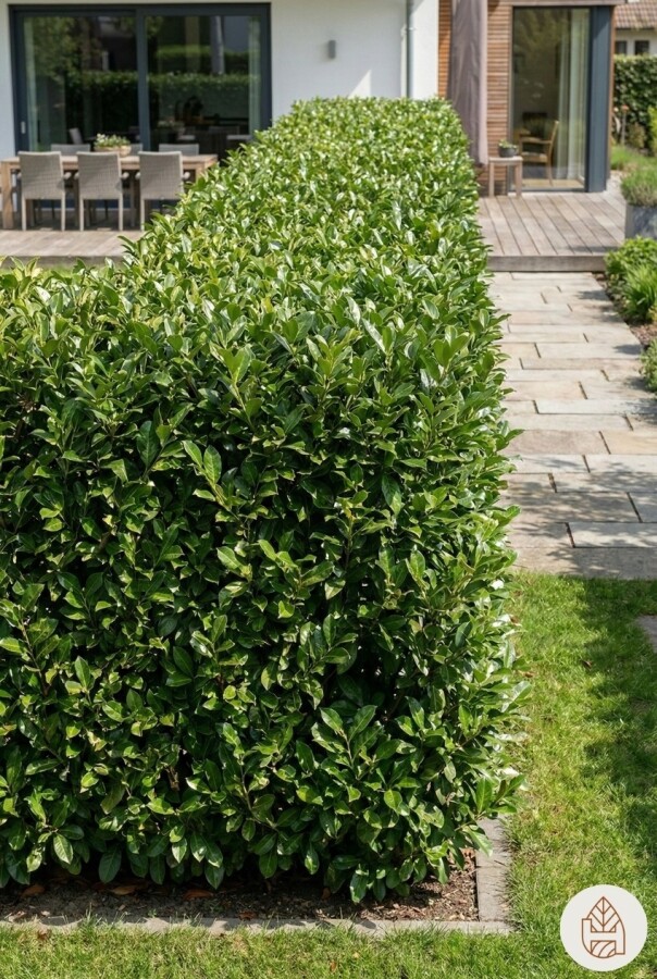 Die Prunus laurocerasus 'Rotundifolia' Hecke ist eine beliebte Wahl für Gärten. Diese Heckenpflanze bietet viele Vorteile: