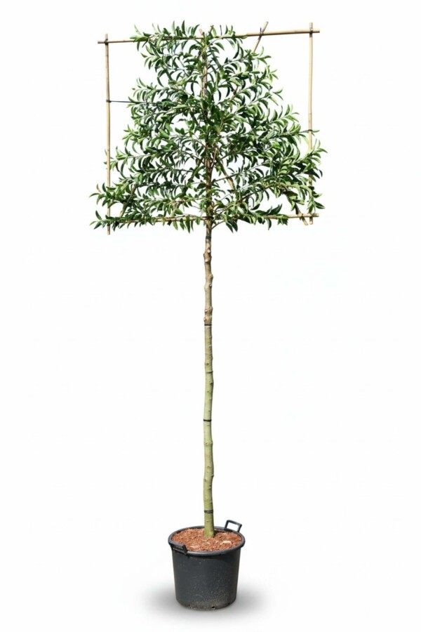 Die Portugiesische Lorbeerkirsche Prunus lusitanica ‘Angustifolia’ wächst am besten an einem sonnigen bis halbschattigen Standort in einem geschützten Gartenbereich. Ein nährstoffreicher, humusreicher und gut durchlässiger Boden sorgt für starke Wurzeln sowie gesundes, glänzendes Laub. Dieser Spalierbaum wächst gut auf Sand- und Lehmboden, solange der Boden nicht zu nass ist. Nasser, schwerer Boden wird schlecht vertragen, während leicht feuchte, luftige Erde besser geeignet ist. Am richtigen Standort bildet der Baum eine dichte Spalierform mit kräftigem Wachstum. Der Spalierbaum eignet sich gut als grüne Grundstücksbegrenzung oder als ruhige Abschirmung im Garten. Ein geeigneter Standort ist wichtig für Wachstum und Form.