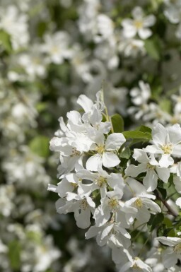 Die Blütezeit des Malus baccata 'Street Parade' ist in den Monaten April und Mai.